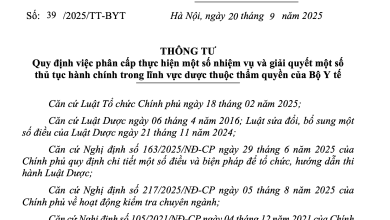 Circular No. 39/2025/TT-BYT, issued by the Ministry of Health (MoH) on September 20, 2025, details the delegation of certain duties…